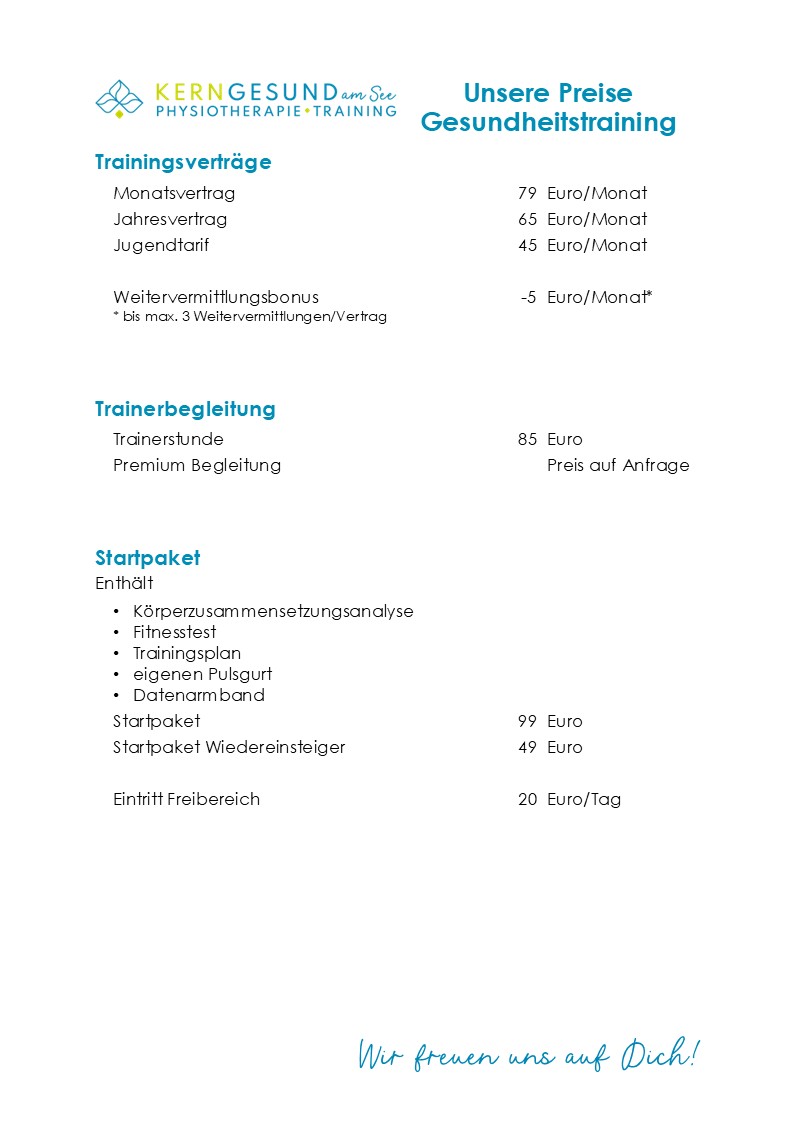 • eine ausführliche, individuelle Einstellung Deines Gesundheitstrainings,